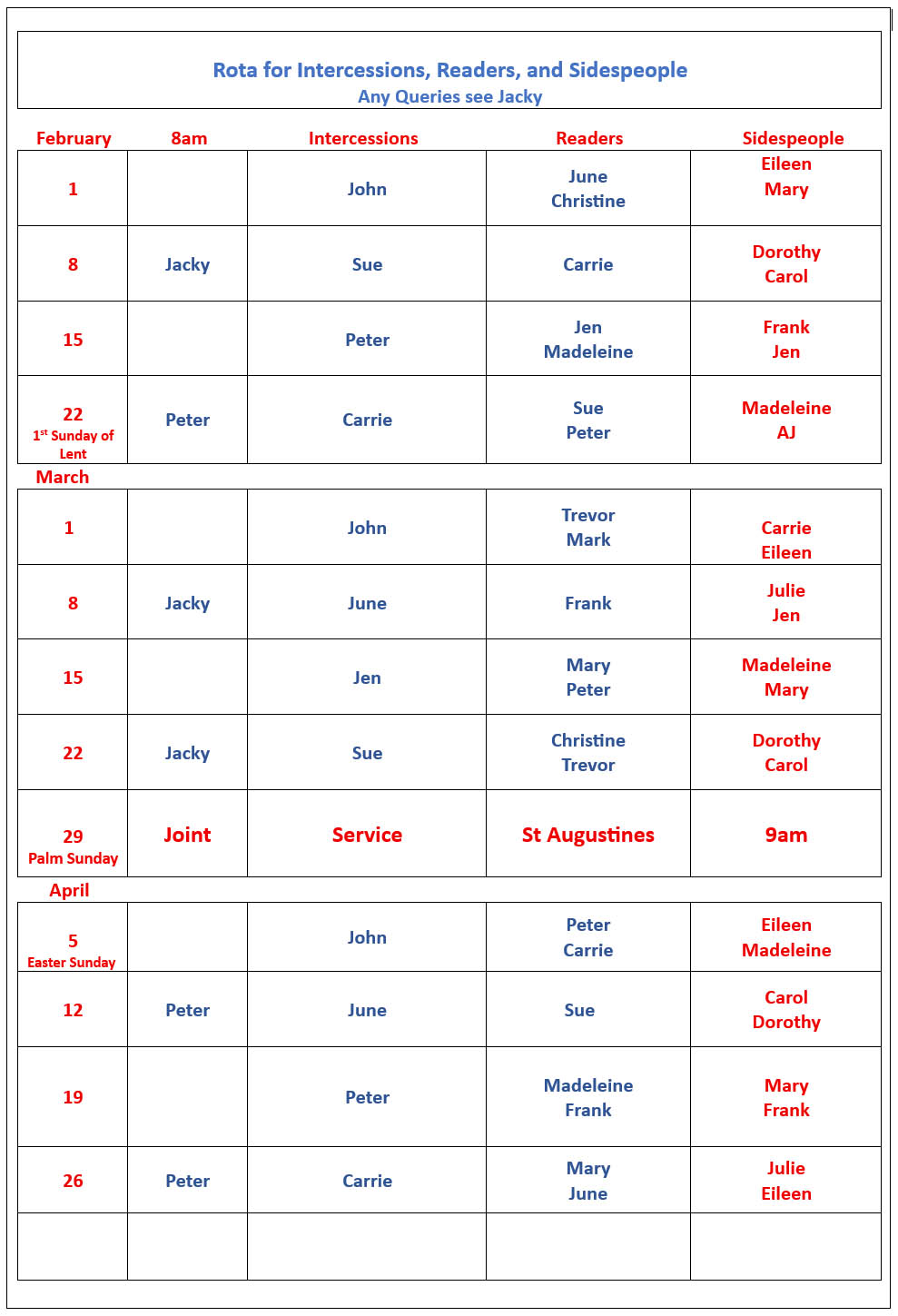 Bible Readings Rota